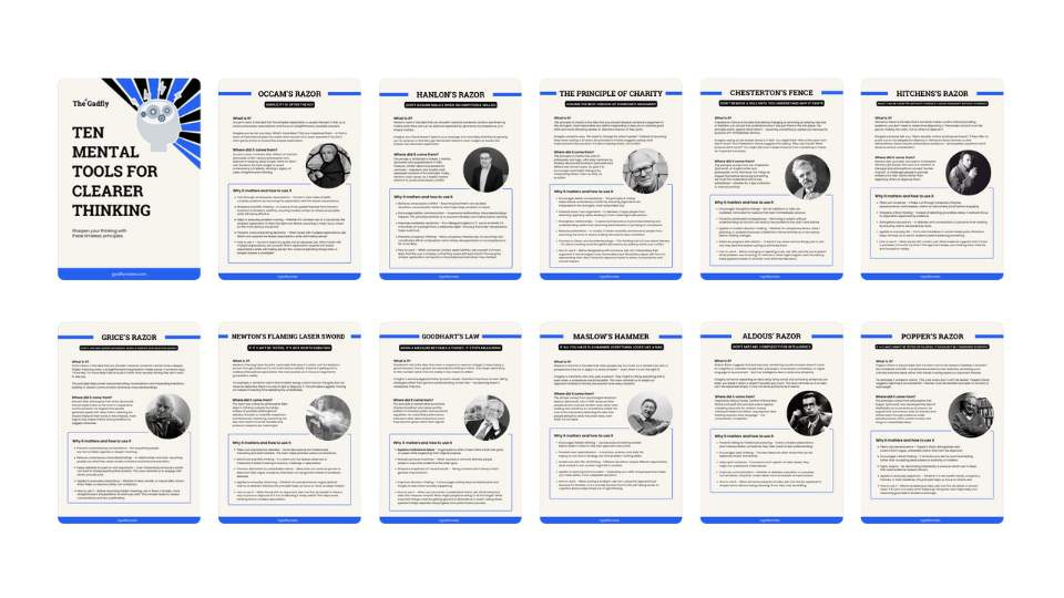 Tools10 Mental Tools for Clearer ThinkingA concise guide to ten well-known mental tools – from Occam’s Razor to Goodhart’s Law – designed to help you think more clearly and avoid common errors in reasoning.This post is for paid subscribersSubscribeAlready a paid subscriber? Sign inNext